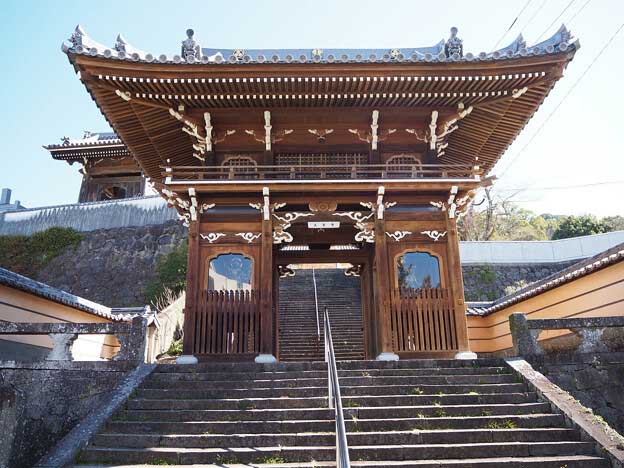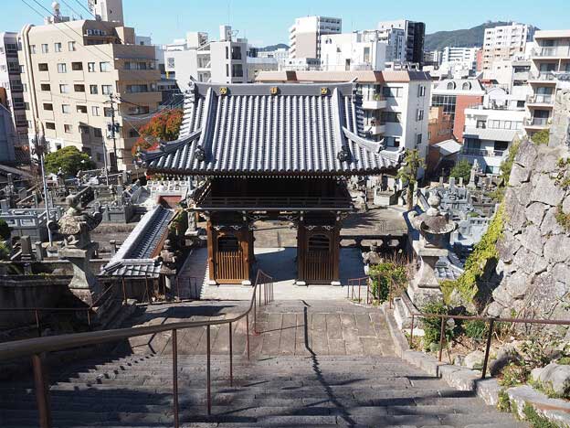 慶長19年(1614年)、伝誉関徹の開山により創建、寛永年間に現在地へ移転しました。延宝2年(1674年)に歴代将軍の位牌を祀る御霊屋が建立されるなど、長崎三大寺院のひとつとして格式高いものでした。江戸時代には幕府からも朱印状を与えられて隆盛しました。