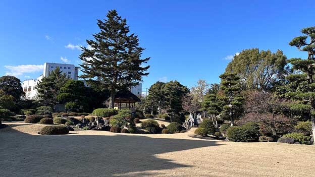 伊藤伝右衛門邸の本邸を出て、本邸の右側面(東側)の方へ進むと、「旧伊藤商店事務所(現在は白蓮館)」と「書生棟(現在は休憩所)」があり、その先に進むと、国指定名勝である「旧伊藤伝右衛門氏庭園」があります。