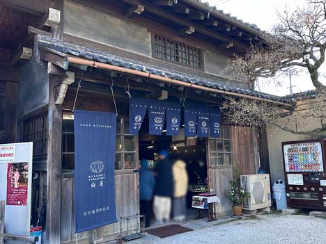 長屋門に隣接する「車庫」であった建物は、現在は売店「ショップ白蓮」になっています。