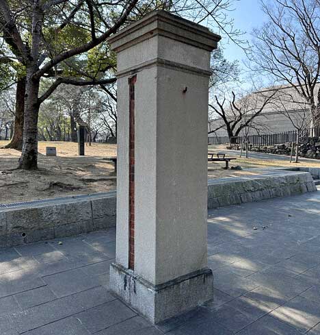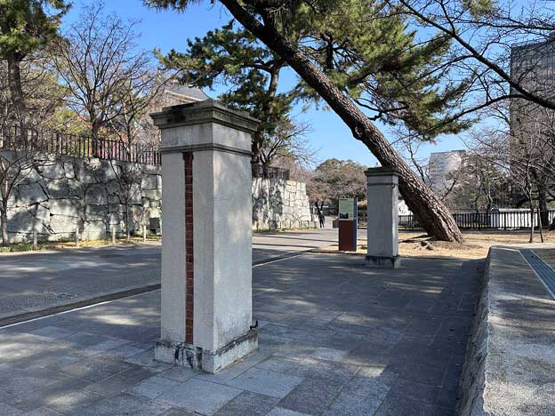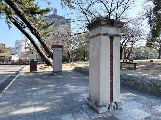 現在、小倉城内には2つの軍事施設跡があります。本丸にある「第十二師団司令部正門跡」と、松の丸にある「歩兵第十二旅団本部正門跡」です。この2つの門は、小倉城の「鉄門跡」を挟んで向かい合う位置に立っています。