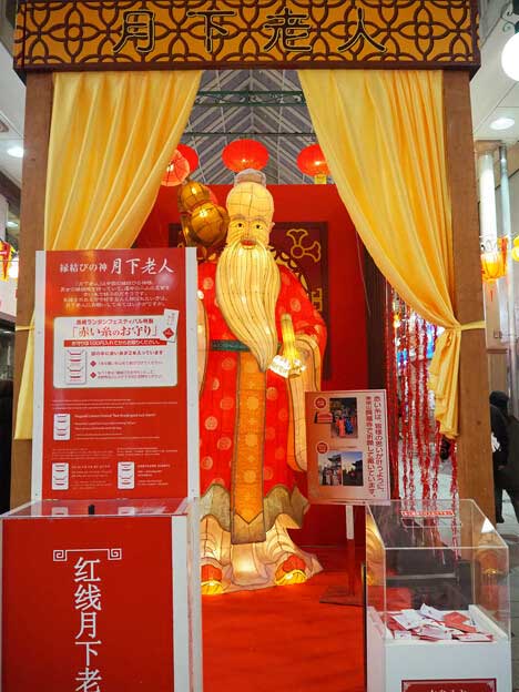 ベルナード観光通りには、縁結びの神様「月下老人」のランタンが設置され、特製の「赤い糸のお守り」や「恋ランタン」にお願い事を書いて月下老人に奉納することができます。