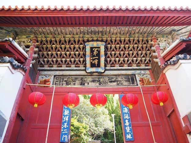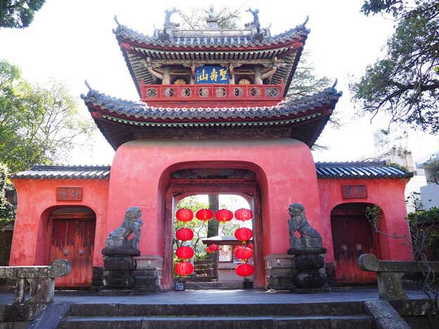 「崇福寺」は、長崎で貿易を行っていた福建省福州出身の華僑の人々が中心となり、寛永6年(1629年)に福州から超然を招いて創建した黄檗宗(おうばくしゅう)の寺院です。中国様式の寺院としては日本最古のものです。2つの国宝「大雄宝殿」「第一峰門」を始め、重要文化財など全21もの文化財を有しています。殿堂内の仏像仏具類は、いづれも中国人名匠の手によるものです。