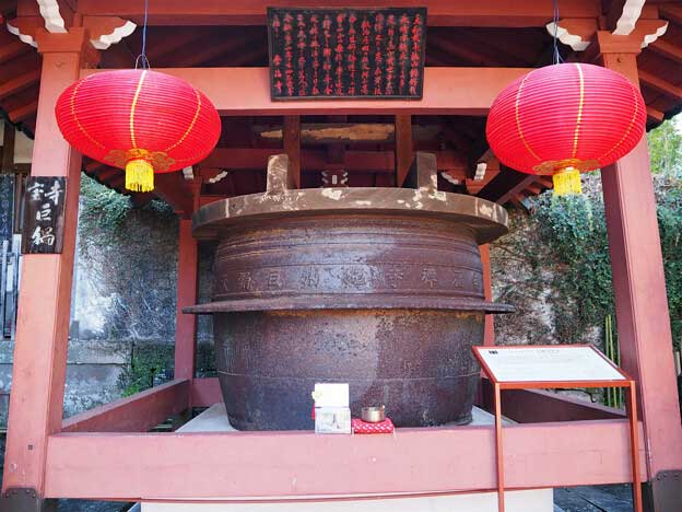 「大釜」は、第4代住持の唐僧・千呆(せんがい)が飢餓救済の施粥(せじゅく)の為に作った物です。