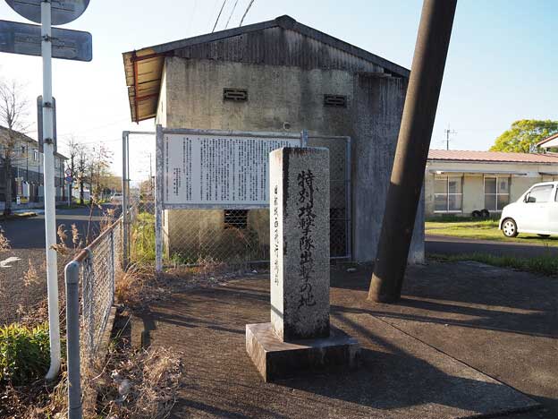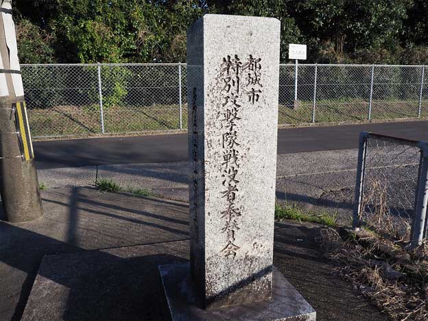 戦後、西飛行場跡は公共住宅群が建設され、一部は陸上自衛隊の都城訓練場に転用されました。現在、「特別攻撃隊出撃の地/旧都城西飛行場跡」の祈念碑と説明版が建つのは、市営都原団地の南東の角です。