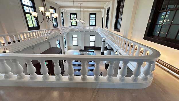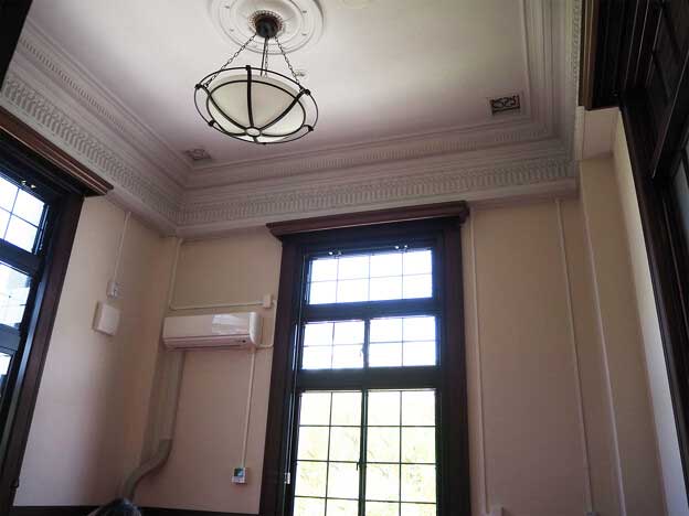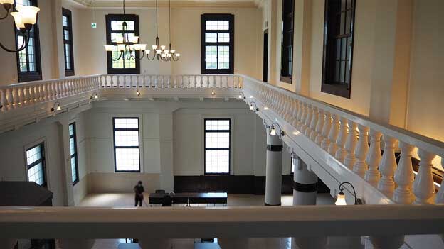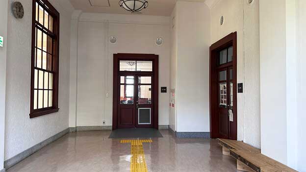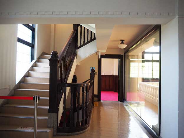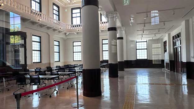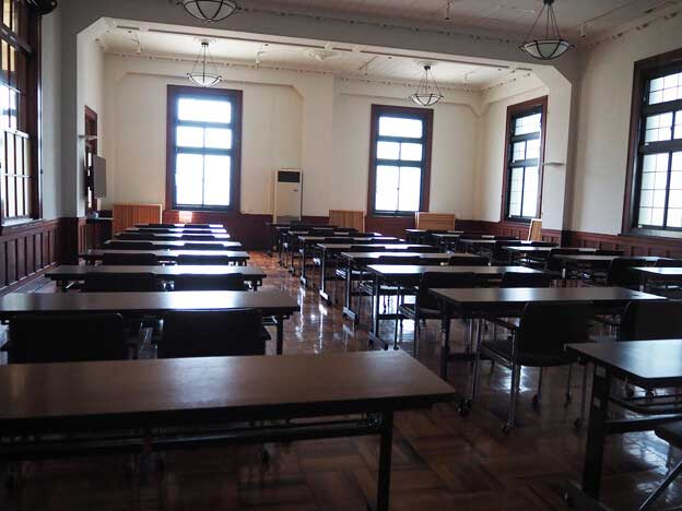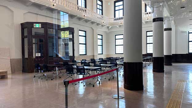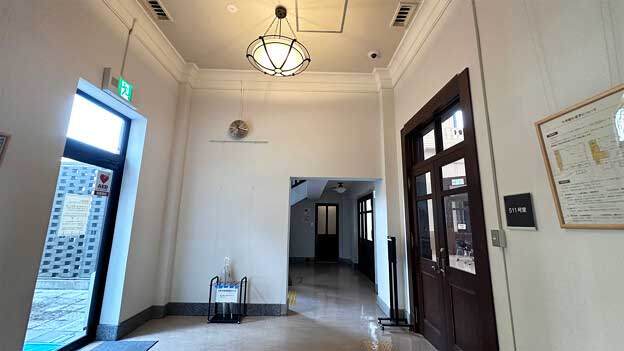 現在は会議室として利用されており、平日の8:30~17:15は館内の一部(階段・エレベーター周辺)を無料で見学できます。