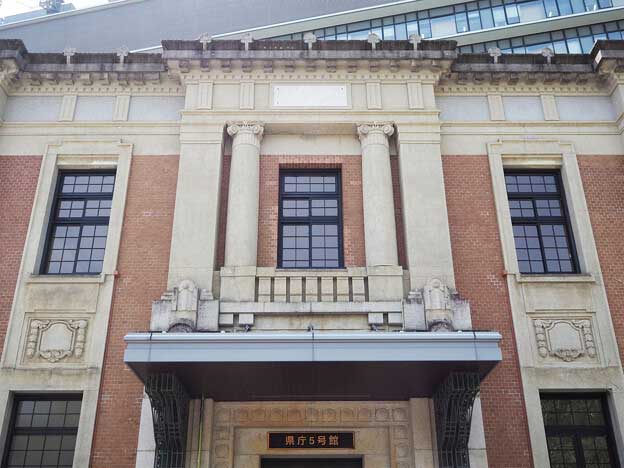 宮崎県庁5号館 は、「宮崎県庁本館」の向かい側、県庁防災広場に建つレンガ造りの建物です。昭和元年(1926年)に、株式会社宮崎農工銀行の社屋として建設されました。その後、日本勧業銀行や第一勧業銀行の宮崎支店を経て、昭和61年(1986年)に宮崎県が土地・建物を取得しました。令和2年(2020年)に曳家工法により元の位置より約70m移築し、創建当時の状態に復元する改修工事を行いました。令和3年(2021年)に国登録有形文化財となりました。