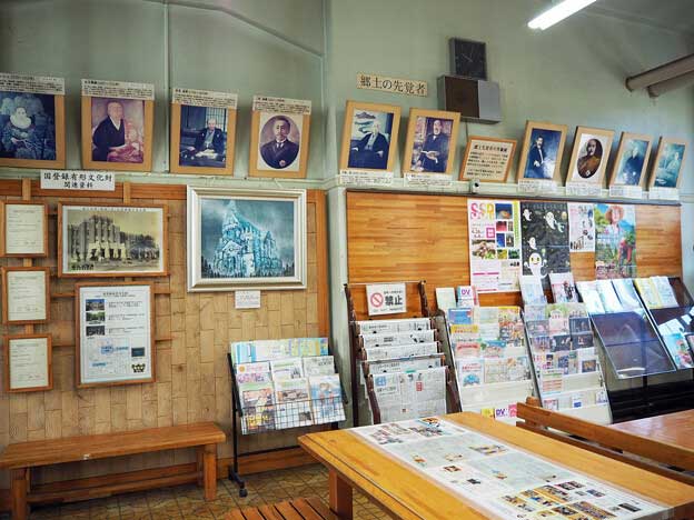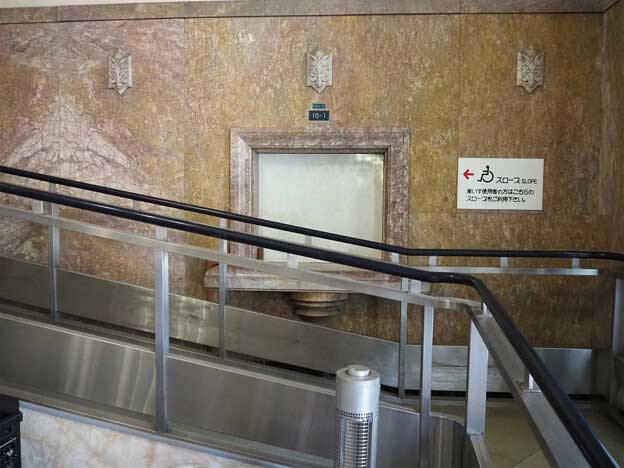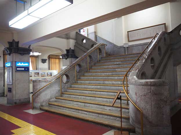 また、広間の壁などにも大理石がふんだんに使用され、先述の鞍岡産のものの他、徳島県、山口県、高知県産のものが使用されています。