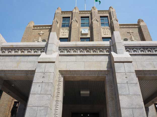 宮崎県庁本館は、鉄筋コンクリート造三階地下一階建で、塔屋と煙突が付き、ネオゴシックを基調とした垂直性の強い建物です。