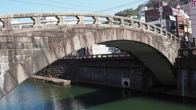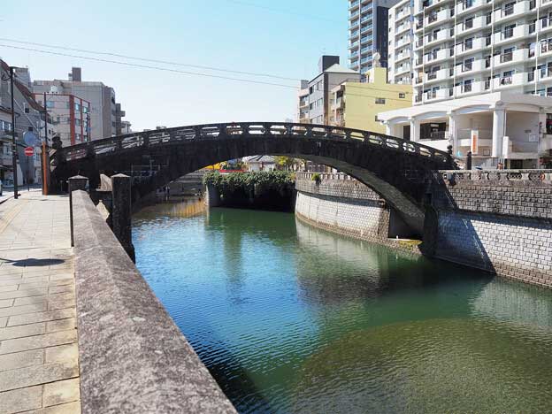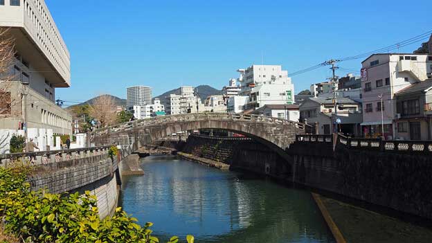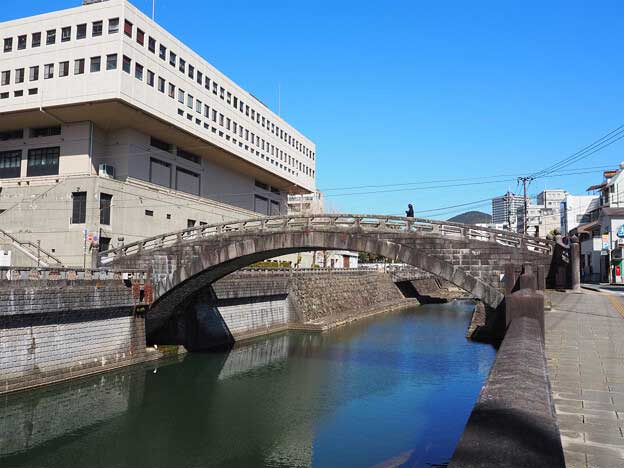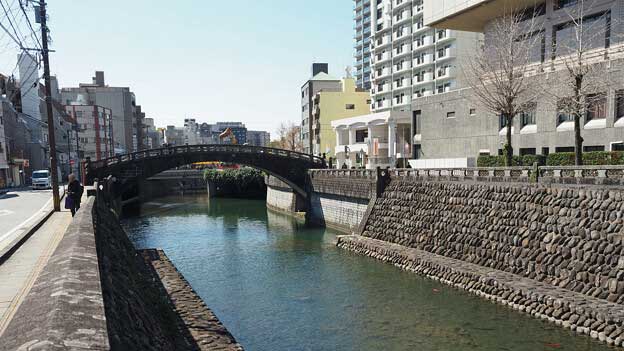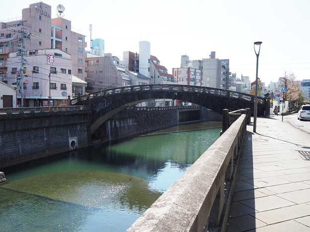 「東新橋(ひがししんばし)」は、中島川の第8橋です。魚の町と諏訪町を繋ぐ橋で、長崎市民会館の裏手に架かっています。