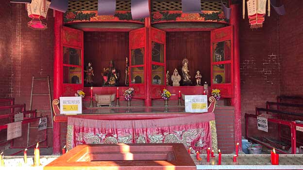 本堂には、向かって右側に観世菩薩さまが、左側に関帝が祀られています。