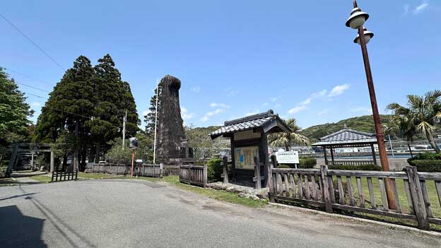 宮崎県日向市の南端にある美々津町には、江戸時代の町割りを残す重要伝統的建造物群保存地区があります。そんな美々津の耳川沿い、美々津港付近の「立磐神社」境内入口に「日本海軍発祥之地碑」があります。