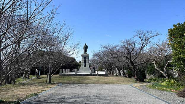 平野二郎國臣銅像 は、「西公園」の南側入口付近にあります。