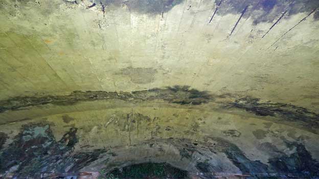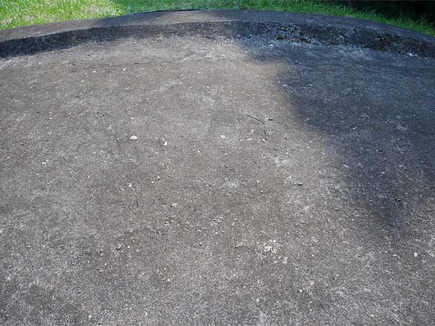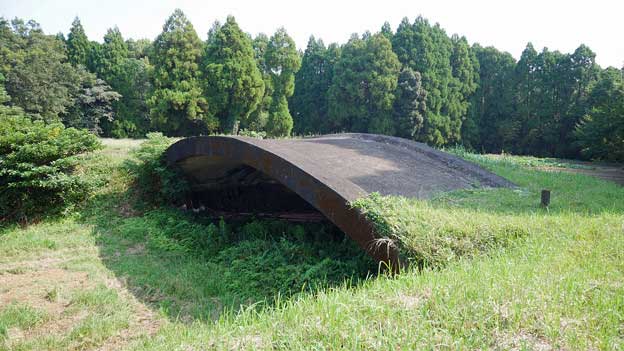 コンクリート造りの有蓋掩体壕は、大まかに分けて、海軍式と陸軍式に分かれており、海軍式は豪の正面入口が飛行機の形である凸型に開いており、陸軍型はこの掩体壕の様にゆるやかなカーブになっています。