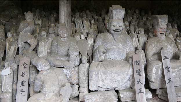 日本三大五百羅漢の一つに数えられ、境内には五百羅漢をはじめ千体地蔵など、三千数百体の様々な表情をした石仏が安置されています。