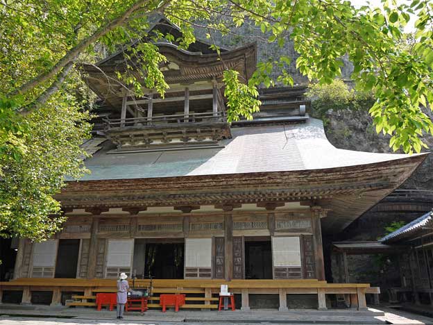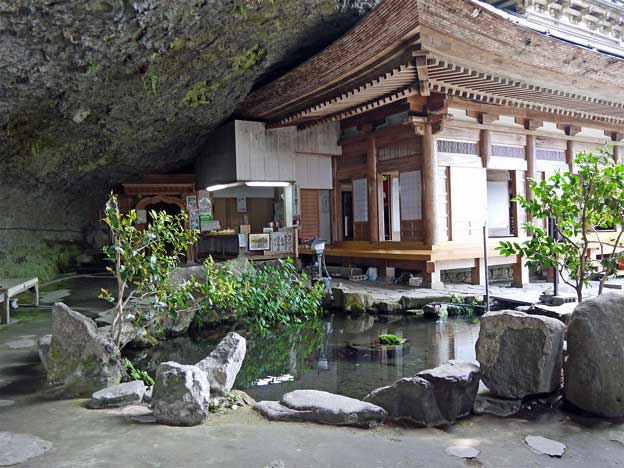 「無漏窟」の先は更に大きな岩窟となっており、その先に本堂があります。本堂は岩肌にめり込む様に建っており、下部が岩窟の中に埋もれています。