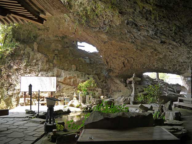 岩窟の下には池があり、高源水と名付けられた往年の滝壺の跡なのだそうです。その上部はぽっかりと空いているので、大雨が降ると滝の様になるのかもしれませんね。