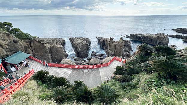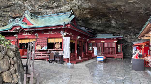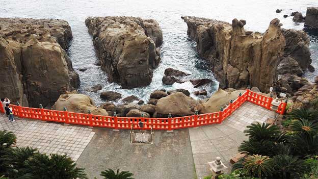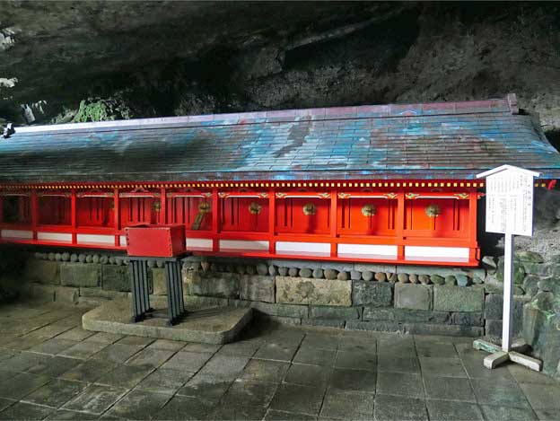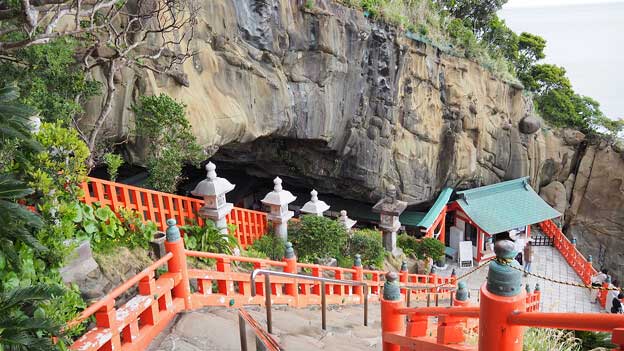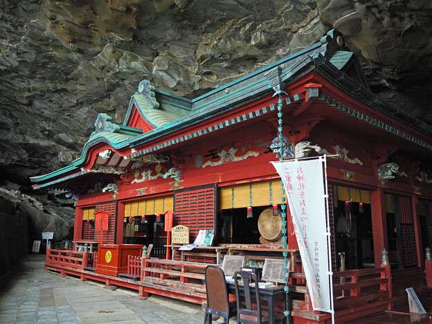 鵜戸神宮本殿は、鵜戸崎の日向灘に面した岩窟内に建てられている。