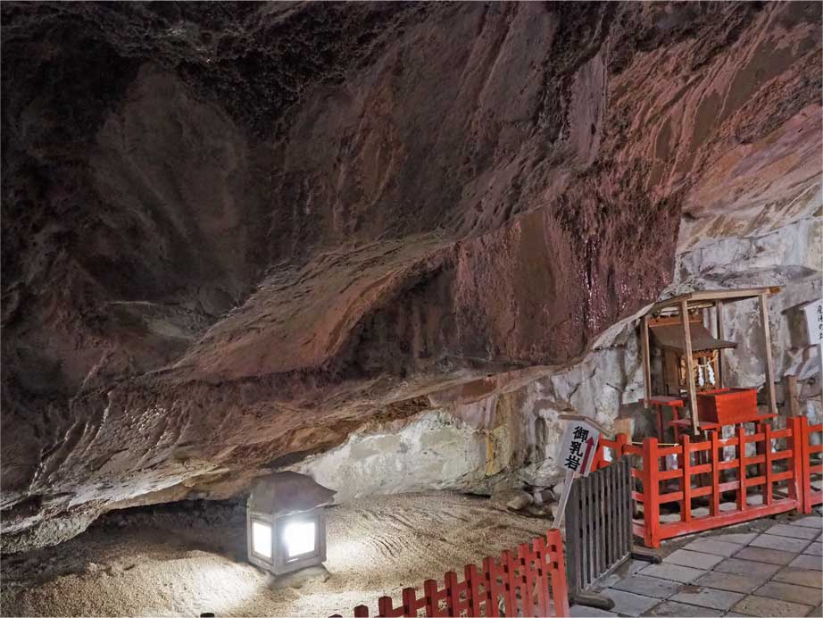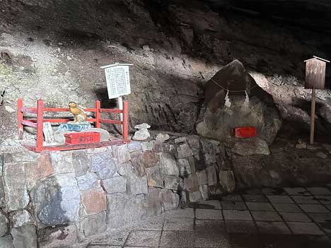 参拝順路は洞窟内に入って左回りに。まず本殿をご参拝して、社殿の周りを左回りに一周する様に進みます。社殿の周囲には「九柱神社」「皇子神社」「撫でうさぎ」「おちちいわ」など有難い見どころが幾つもあります。