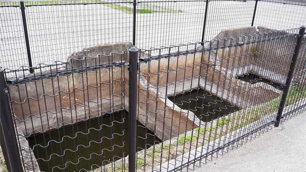 メインの建物の西側には、付属する施設で、燃料または水を入れていたと思われるタンクの土台2基が残っています。